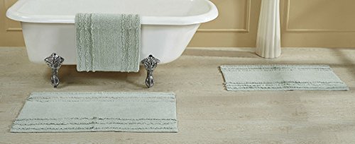 Better Trends/ Pan Overseas Ruffled Border 100% Cotton Bath Mat, 17" x 24", Aqua