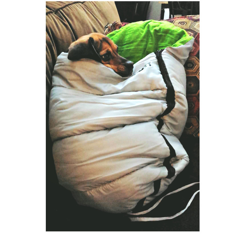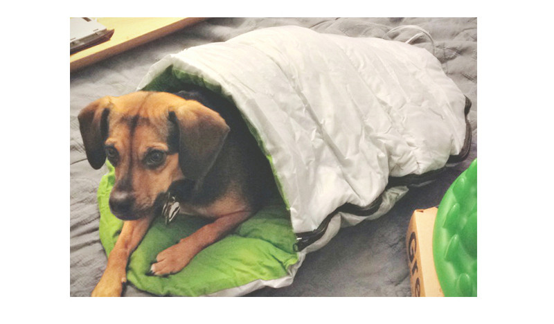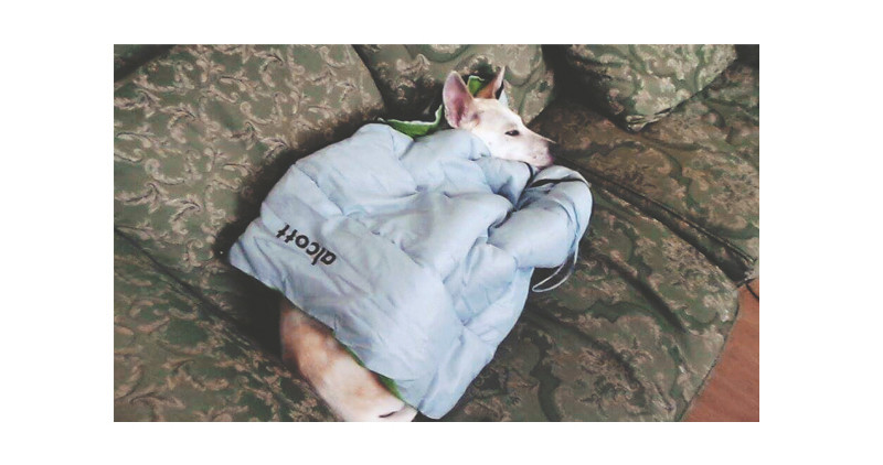 소형견들에겐 S 사이즈 정도의 침낭이 딱 알맞는 크기일 것 같은데요.