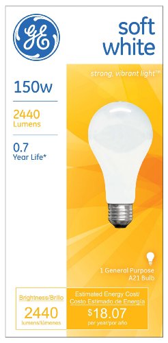 GE Lighting 10429 Soft White 150-Watt, 2680-Lumen A21 Light Bulb with Medium Base, 12-Pack