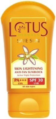 -. Title : Lotus Herbals Safe Sun Skin Lightening Anti Tan Sunblock - SPF 30 PA+++ 50g (Pack of 2)