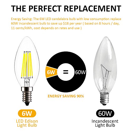 - ▲The LED filament bulb is an energy - saving alternative to a standard incandescent bulb.Save over 90% on electricity bill of lighting by replacing 60W with just 6W.Rated for an astonishing>30,000 hours of use-over 20 years on an average use of 3hrs/day! No more constant bulb replacement.