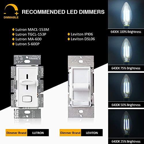- ▲Perfect dimming performace.Smooth dimming capabilities from 20% to 100% provides you the best lighting according to your need. You’re able to adjust the light brighness to creat a perfect atmosphere at anytime and anywhere.(Suitable for silicon controlled dimmer.RECOMMENDED DIMMER BRAND:Lutron and Leviton) .