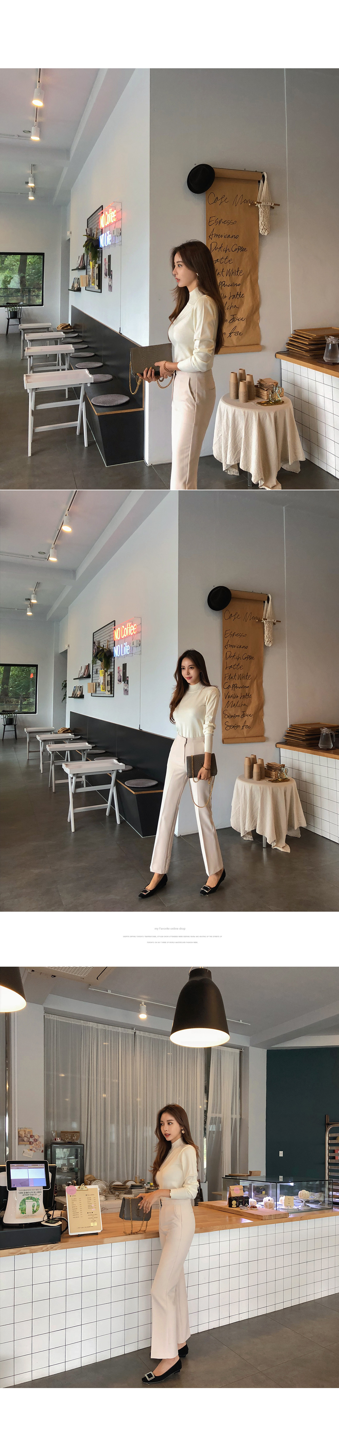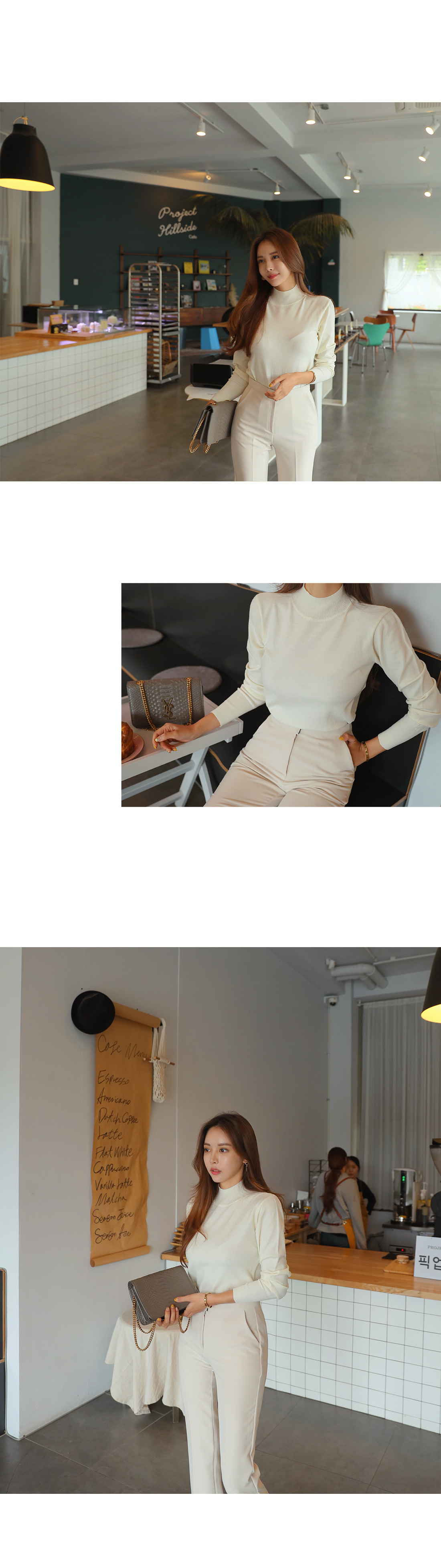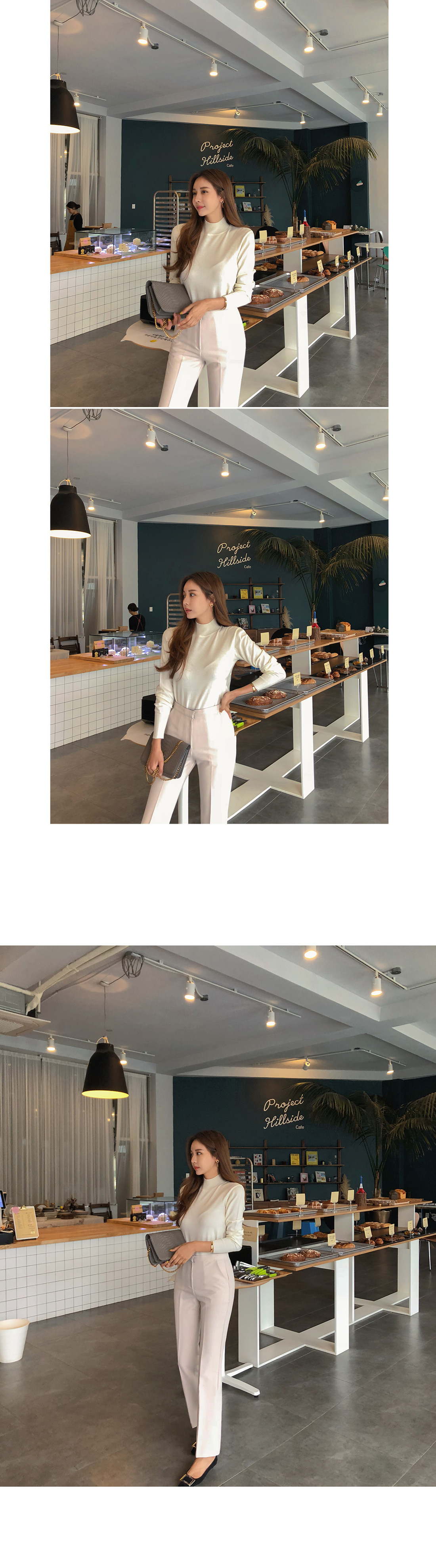 네크라인을 부드럽게 감싸주는 반폴라 디자인으로