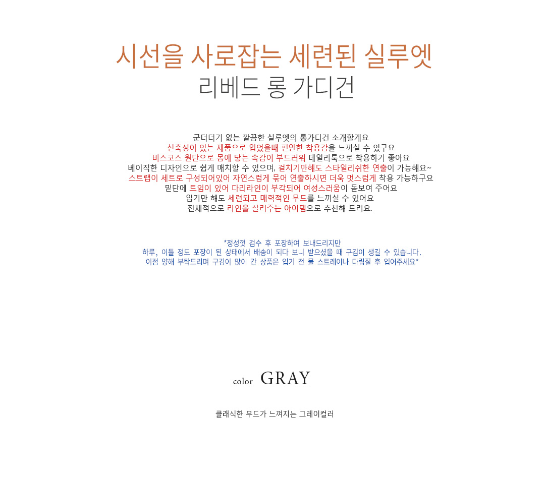 ※ 블랙컬러는 특성상 물빠짐이 있을수 있으니 꼭 ! 옷에 맞는 세탁법으로 세탁한 후 착용바랍니다.