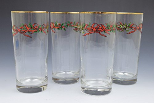 (Royal Worester)/Kitchen Dining/Bar Tools Glasses/DIRECT FROM USA/Royal Worcester Holly Ribbons Highball Glass- Set of 4 NEW NIB