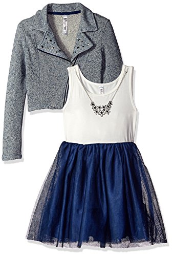 Beautees Big Girls' 2 Piece Moto Jacket Over Dress, Navy 2, 12