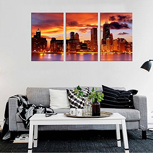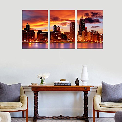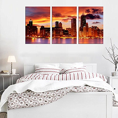 Canvas Wall Art Chicago Skyline Sunset Red Themes Wall DecorIntroduction: