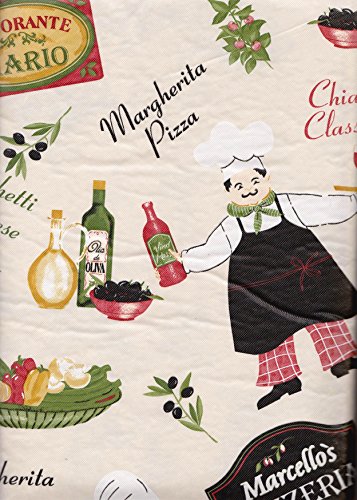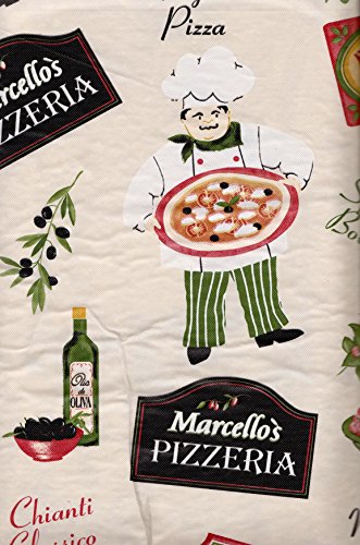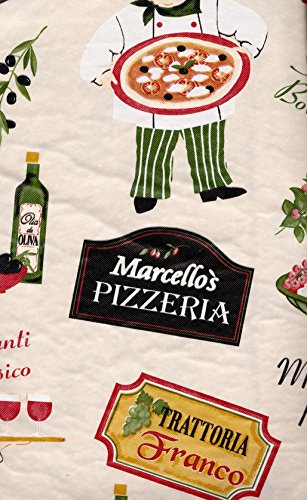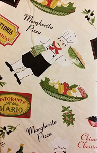 Studio : Elrene Home Fashions Publisher : Elrene Home Fashions Product Description Elrene tablecloth is 100% vinyl with 100% polyester flannel backing. Pictorial of pizzeria gives a light and easy Italian feel to any room or area. Vinyl tablecloth allows for easy care - just wipe clean with damp cloth or sponge. 0