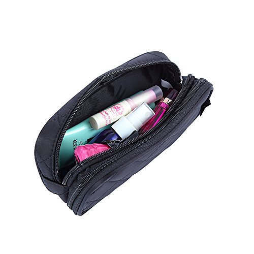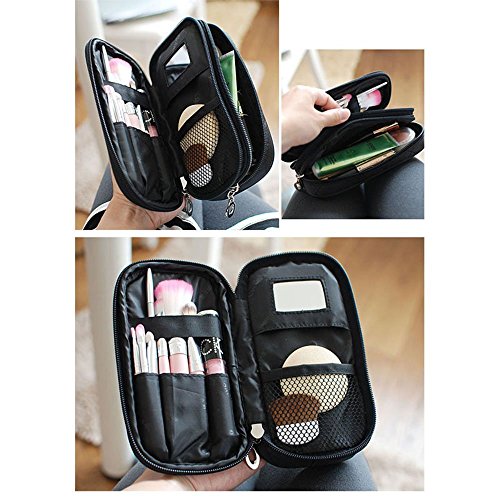 2 zippered layers with 3 separated room to help keep your different makeup essentials organized