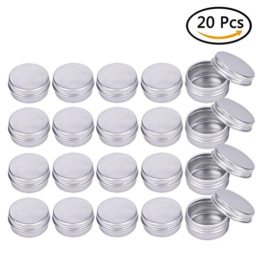 Haishell 20 Pcs Aluminum Round Lip Balm Tin Container Bottle with Screw Thread Lid for Lip Balm,Crafts,Cosmetic,Candles,Storage Kit,1/2 Oz