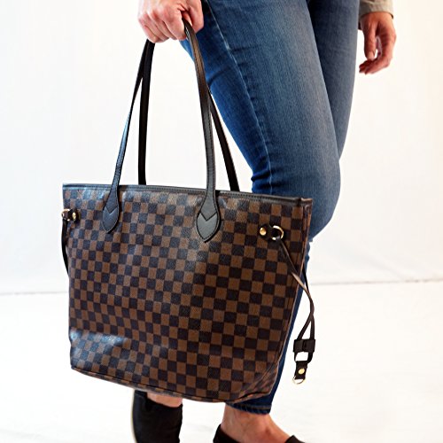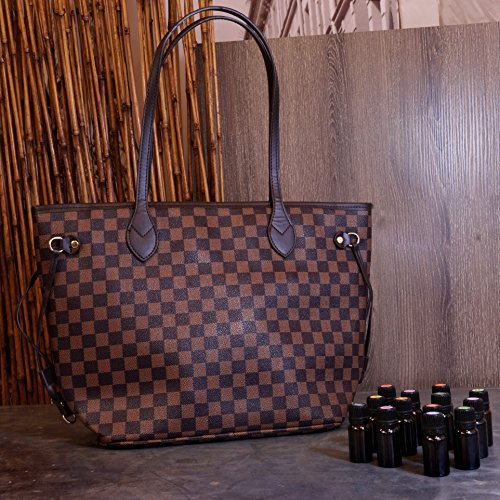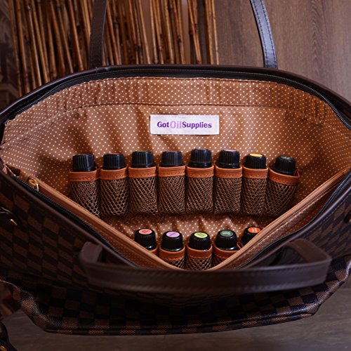 Got Oil Supplies Essential Oils Travel Bag - Organizer Tote with 16 Storage Pouches for Oil Bottles - Checkered Brown & Black Purse for Accessories and Containers