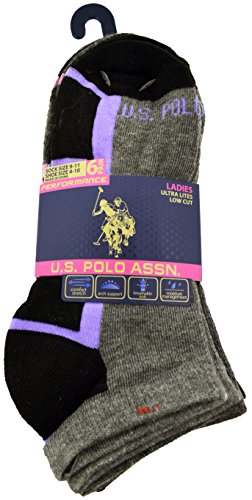 U.S. Polo Assn. Women's 6 Pack Assorted Colors Performance Low Cut Ankle Socks