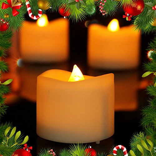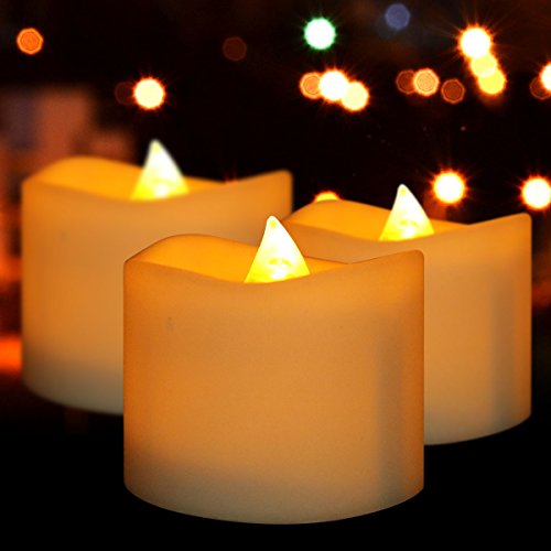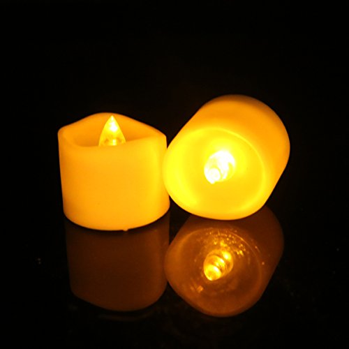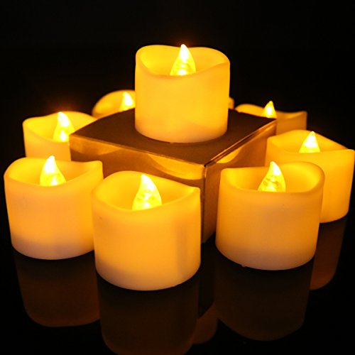 Tea Lights Led Timer (6 hours on, 18 hours off), Flameless Flicking Candles Amber Yellow 24pcs for Window, Wedding, Fireplace, Lantern, Craft project ( uneven )