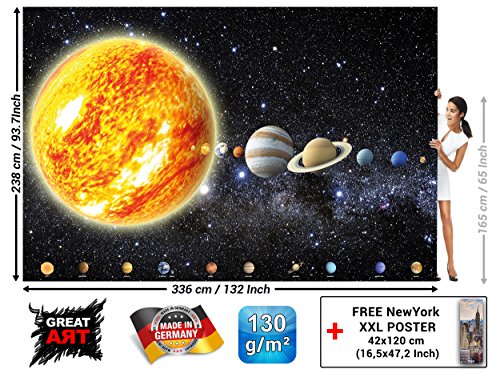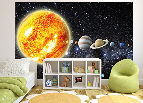 Wallpaper Solar System Mural Decoration Galaxy Cosmos Space Universe All Sky Stars Galaxy Universe Earth I paperhanging Wallpaper poster wall decor by GREAT ART (132.3 x 93.7 Inch / 336 x 238 cm)