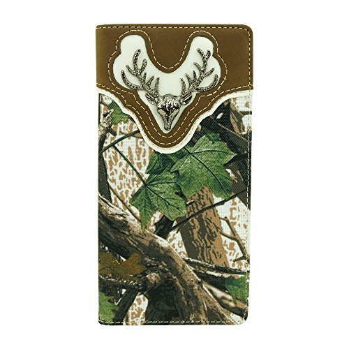 Product DescriptionRIDE AWAY Western Deer Skull Leather Camouflage Bifold Check Book Style Wallet.0