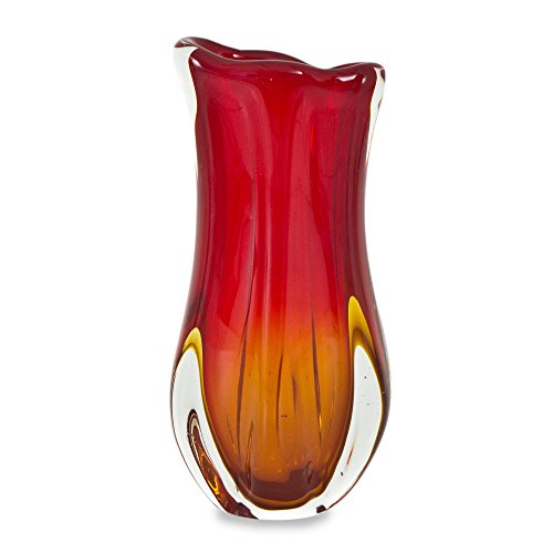 NOVICA 'Amber Shine' Hand Blown Glass Vase