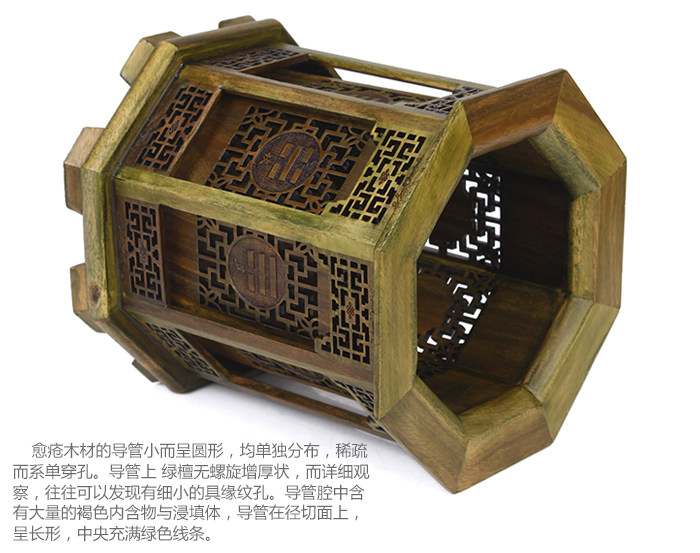 Guaiacum broad-leaved tree explicit heartwood classes. Observed fromthe wood is diffuse porous wood structure. Side, there are significant differences in heartwood. Sapwood heartwood is narrow, pale yellow white, pale green, sometimes with black. Imported into the country towood, sapwood to heartwood is extremely obvious boundaries. If thewood into water, the difference of sapwood to heartwood is more prominent, the growth ring sore wood is not obvious, but the woodsurface are anisotropic ring round, this is not a growth ring, guaiac woodpulp line is very narrow, but the number is much, the naked eye is difficult to identify. Medullary ray in the string section, is arranged horizontally, and a slightly tilted ranks, and its thickness is about 5 - 8 cells.