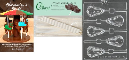 Cybrtrayd Large Lacrosse Lolly Chocolate Candy Mold with 50 Cybrtrayd 4.5-Inch Lollipop Sticks and Chocolatier's Guide