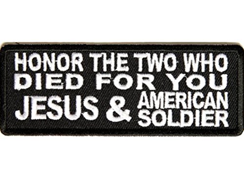 -. Title : HONOR THE TWO WHO DIED FOR YOU JESUS & AMERICAN SOLDIER Embroidered Funny Biker Saying Patch Vest Jacket Emblem Motorcycle