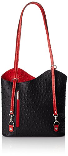 Chicca Tutto Moda CTM Tasche Damen Leder Schulter Strauss, 28x30x9cm, 100% echtes Leder Made in Italy