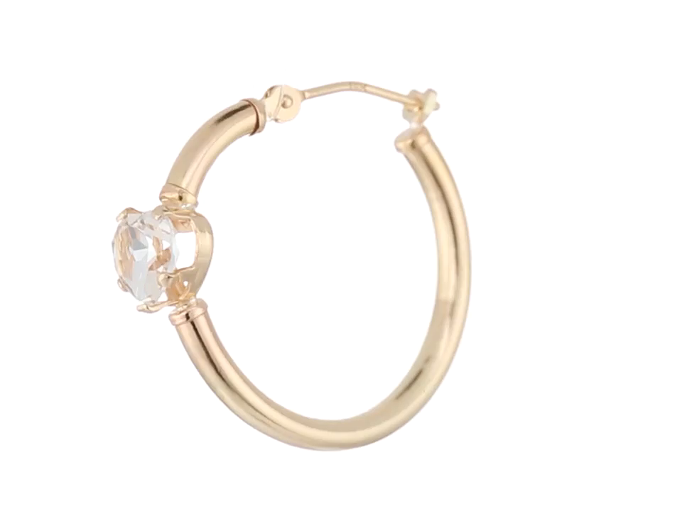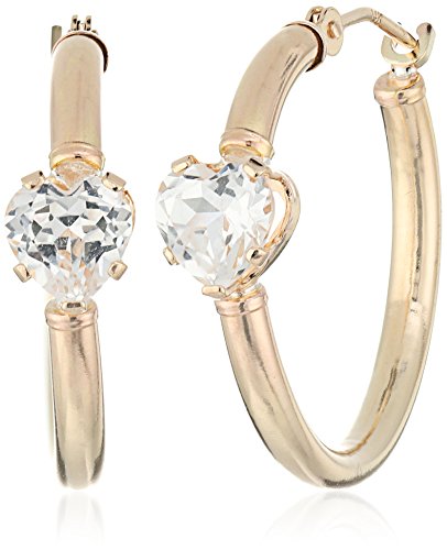 The vivid sparkle of these heart shape created white sapphire stones light up these yellow gold hoop earrings, adding a lovely glow to any look.