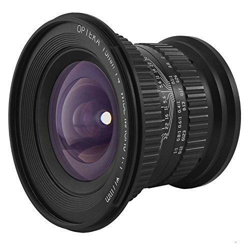 The Opteka 15mm can also serve as an excellent ultra-wide angle lenses with infinity focus for cameras with full frame and ASP-C sensors.The lens is equipped with 12 elements in 9 groups with 3 pieces of high refractive aspherical elements and 1 piece of low dispersion glass that help to deliver crystal sharpness both in the center andd the edge. Barrel Distortion was also carefully controlled. 14 pieces of aperture blades form a close-to-circular aperture, capable of creating creamy shallow depth of view. The body and mount of the lens is constructed out of metal to strengthen its durability.