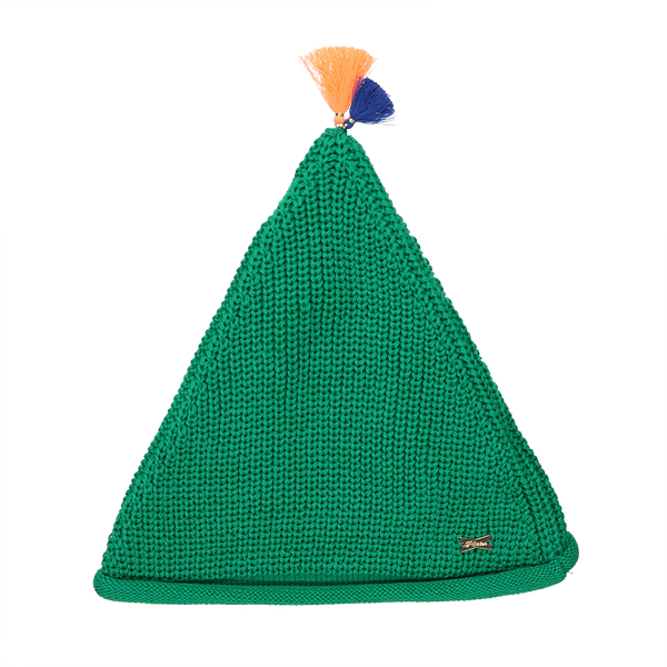 - 그린 컬러의 니트소재 모자로 블루와 오렌지 태슬장식이 사랑스런 고깔모자입니다.