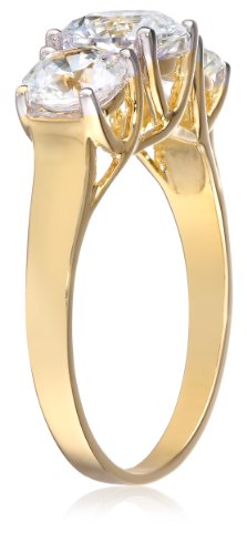 -. Title : 10k Yellow Gold Three-Stone Swarovski Zirconia Ring