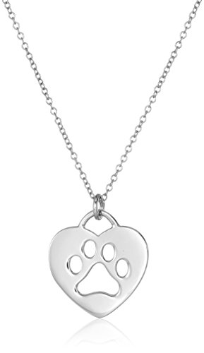 -. Title : Sterling Silver Heart with Paw Cutout Pendant Necklace, 18"