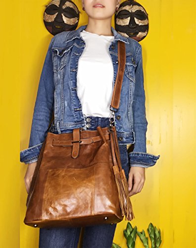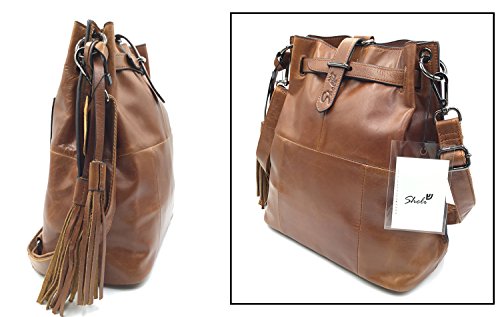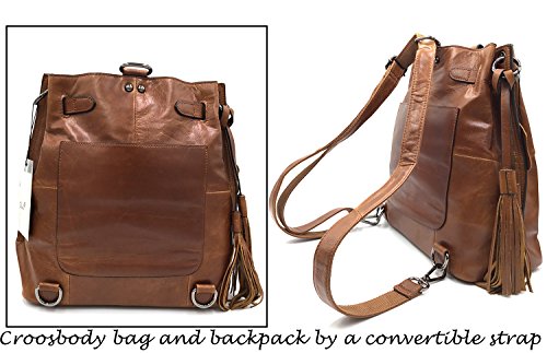 * The smart design by its convertible leather strap which could be converted into a crossbody bag, backpack or even a shoulder hobo. * Finished in a vintage brown (kaki, purple) shade for a strong yet feminine style. Vintage style hobo, but no less fashionable due to its fringe decoration.