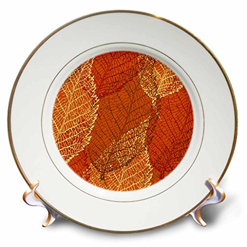 3D Rose Skeletal Leaf Pattern in Orange Brown and Yellow Porcelain Plate, 8"