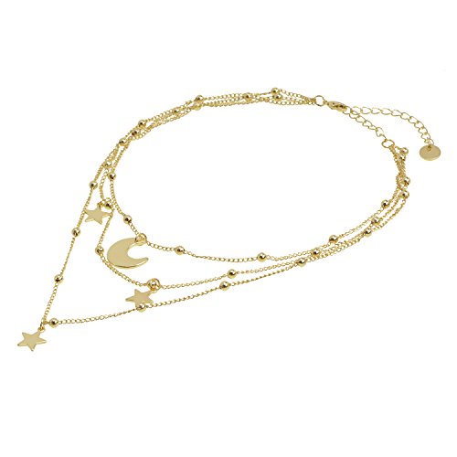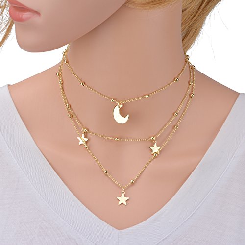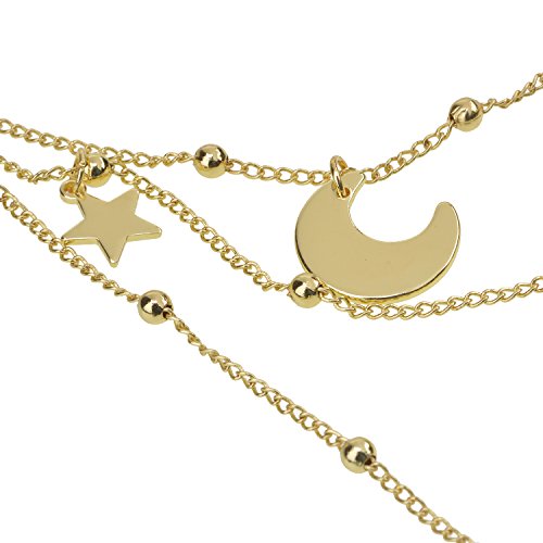 -. Feature : Material: Gold Plated Alloy. / Length: 31CM Choker + 10CM Extension / Crescent Moon Necklace In Classic Style. / Limit Exposure To Water, Perfume And Body Cream. / PERFECT FOR ANY OCCASION:suit of casual wearing,Christmas Valentine Halloween costume and Birthday gift for friend and more.