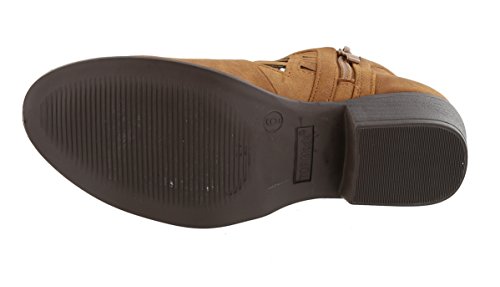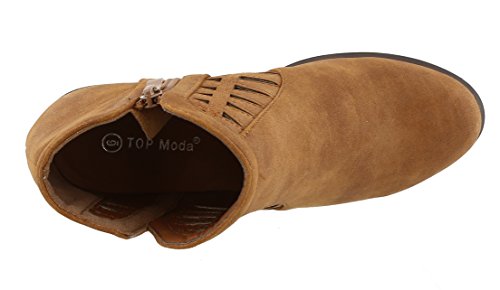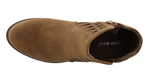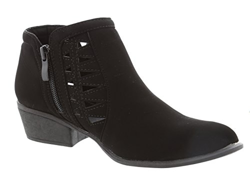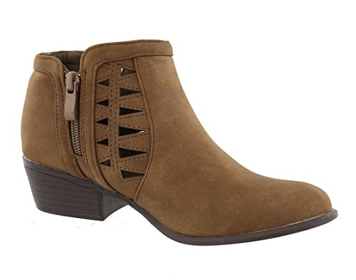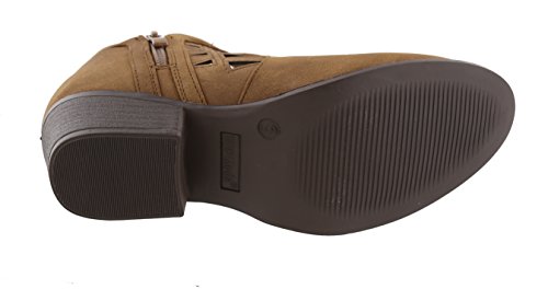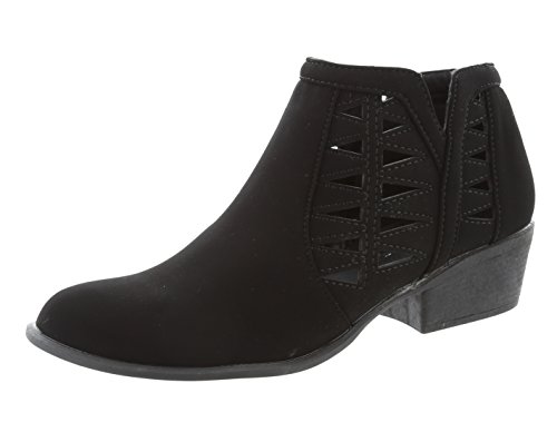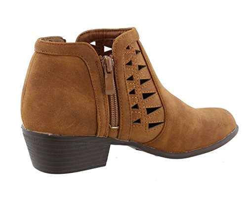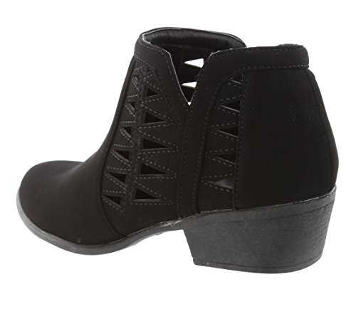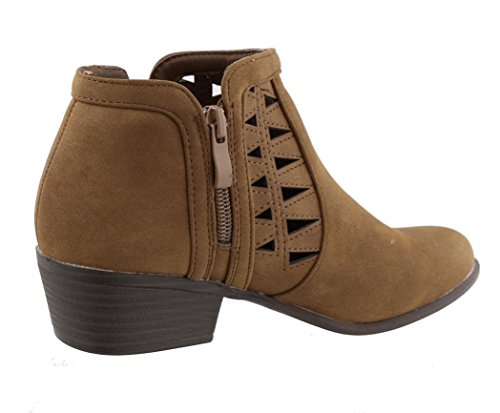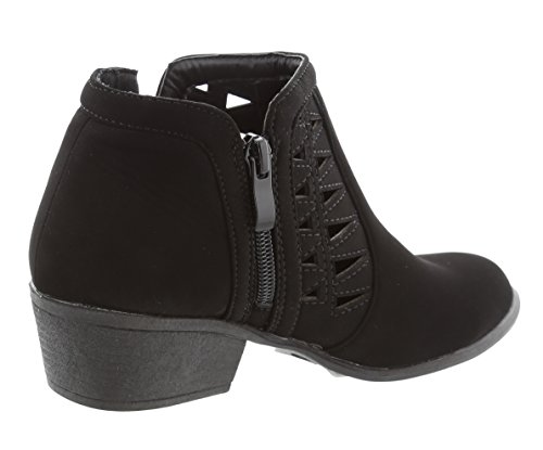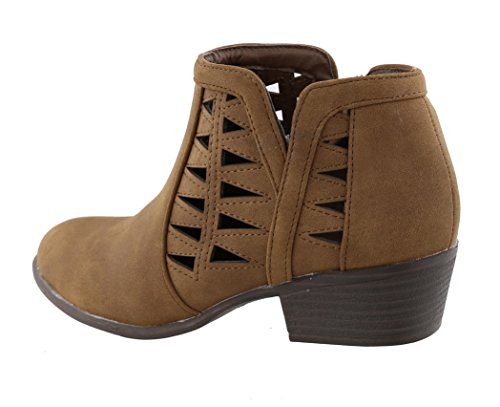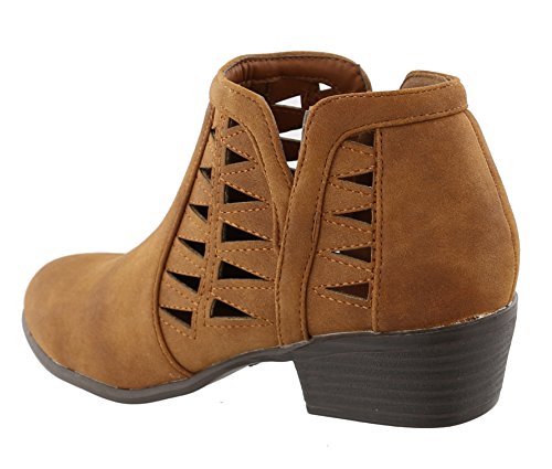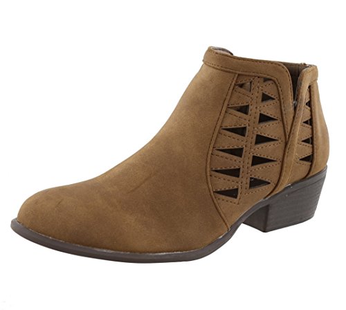 Top Moda Women's Western Geometric Cut Out Chunky Stacked Low Heel Ankle Bootie