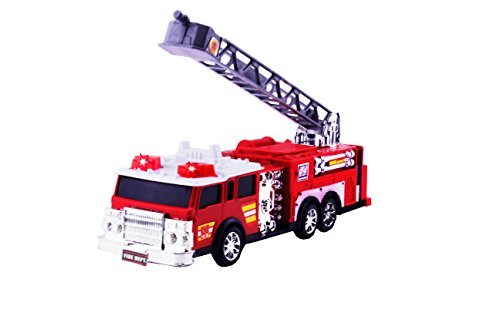 -. Feature : LIGHT AND SOUND : Flashing lights and fire truck sounds alert bystanders a hero's on the way / APPROX DIMENSIONS : Length 14" x Width 3" x Height 5" / MOVING LADDER / FREE WHEELING