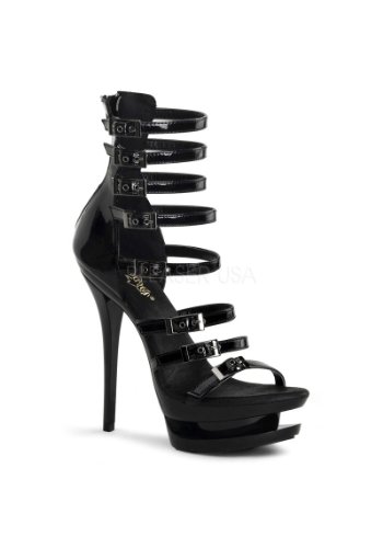 Amazon.com Fierce much? This stunner from Pleaser gives you straps and high gloss attitude from top to bottom. A killer heel and sculpted platform give Blondie the perfect shape while the zip closure keeps things nice and simple. 0