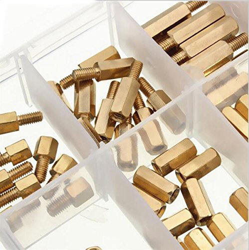 Yosoo 120pcs M3 Copper Brass Pillars Standoff Circuit Spacer PCB Board Nut Screws Hex Round Single Cylinder Head