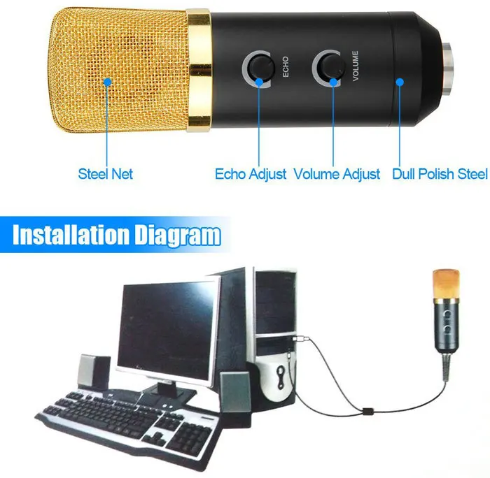 MK - F100TL USB Condenser Sound Recording Microphone with Stand