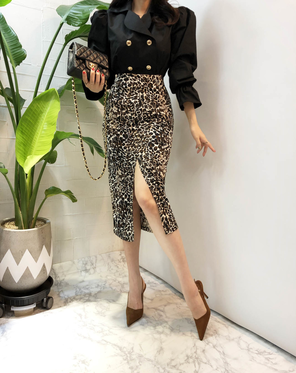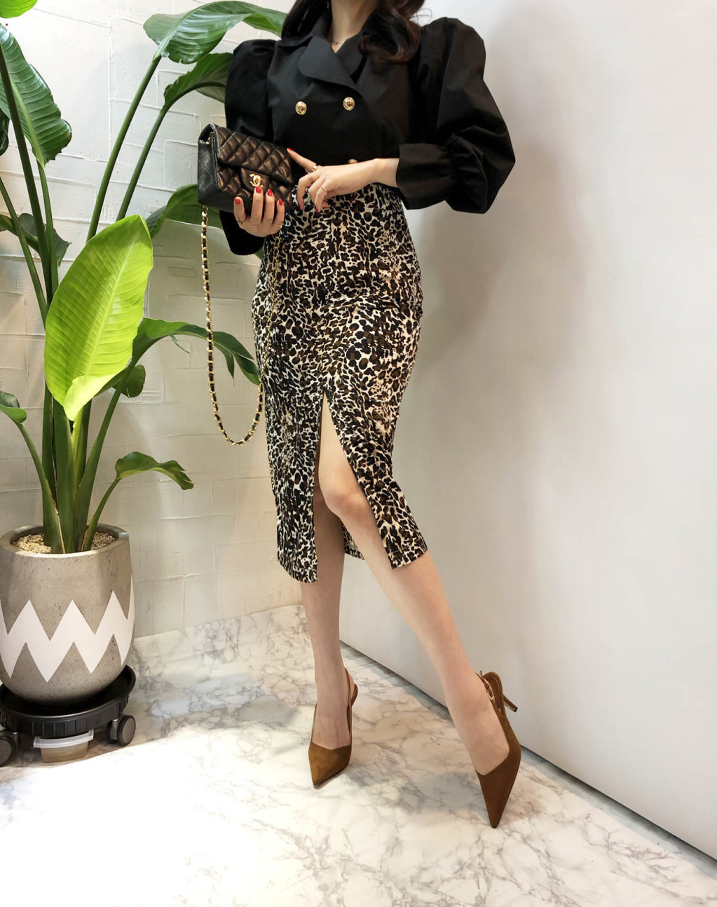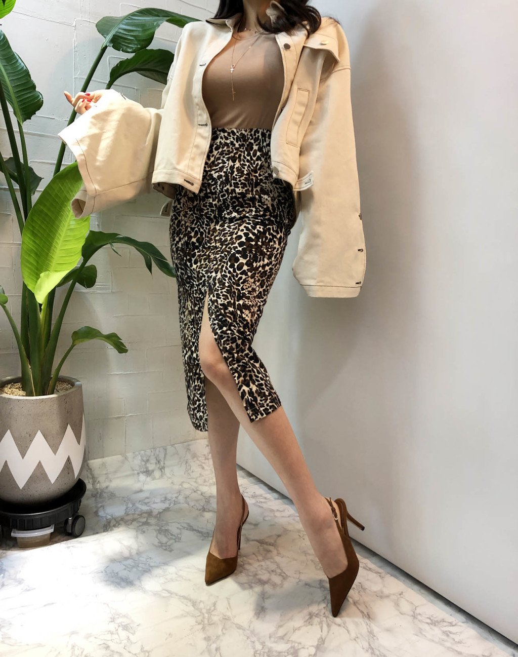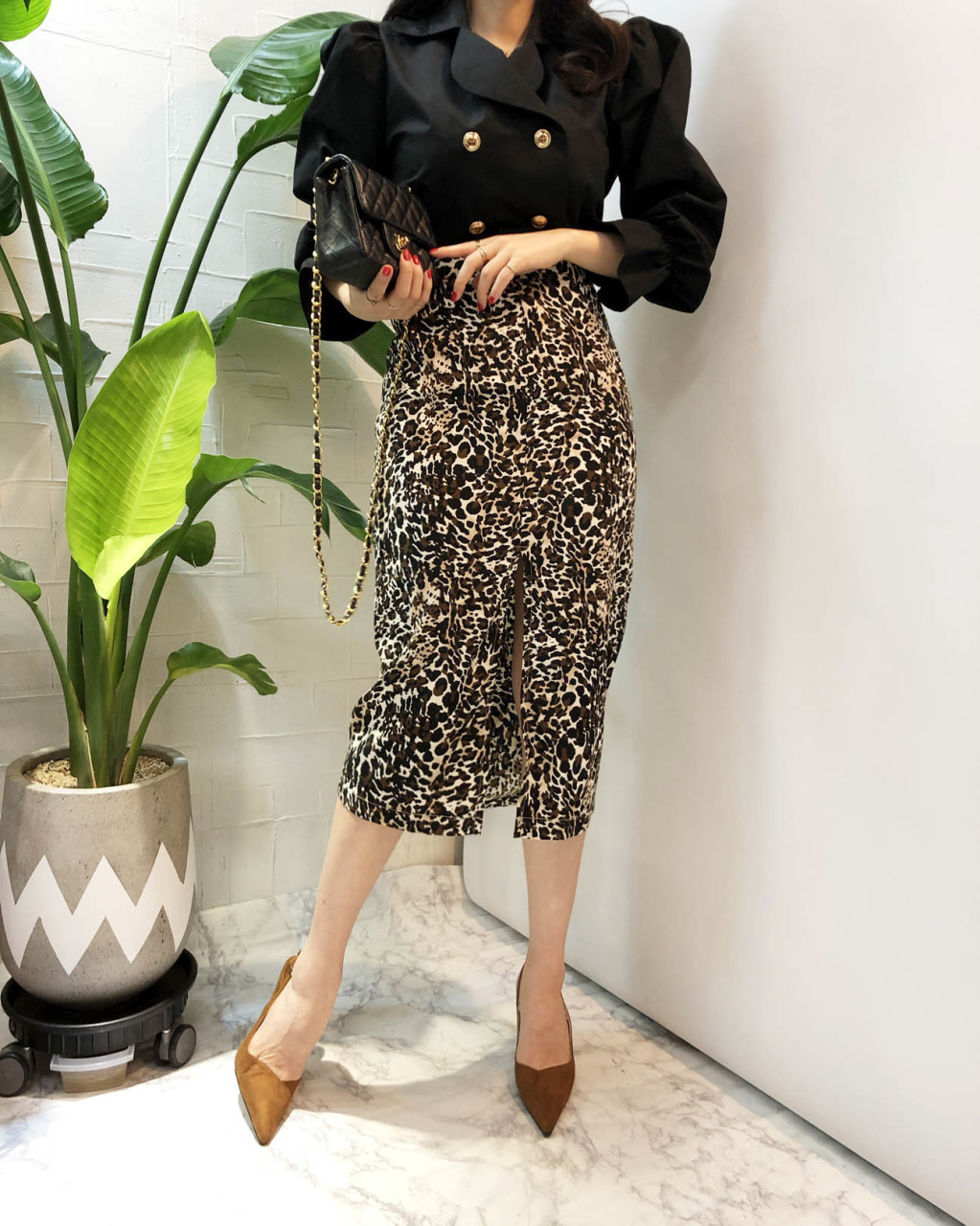 레오파드 패턴으로 포인트를 주어서