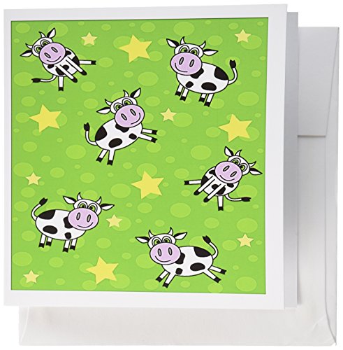 3dRose Happy Cow Boy Print Green - Greeting Cards, 6 x 6 inches, set of 12 (gc_13843_2)