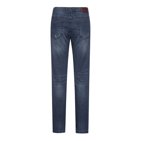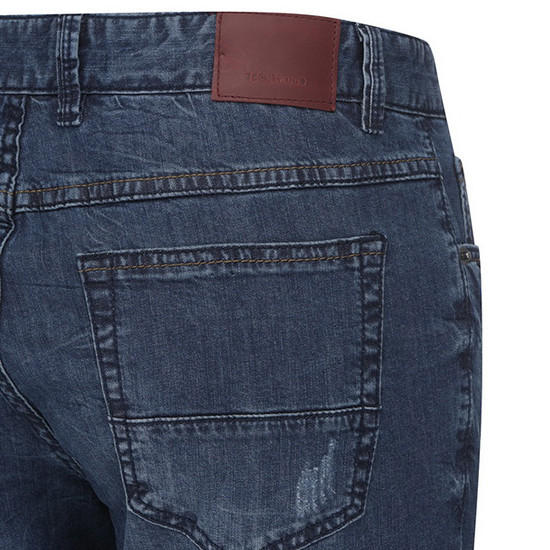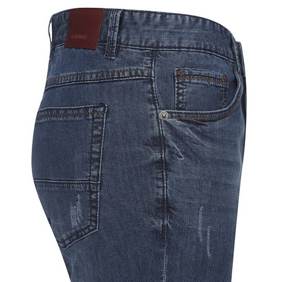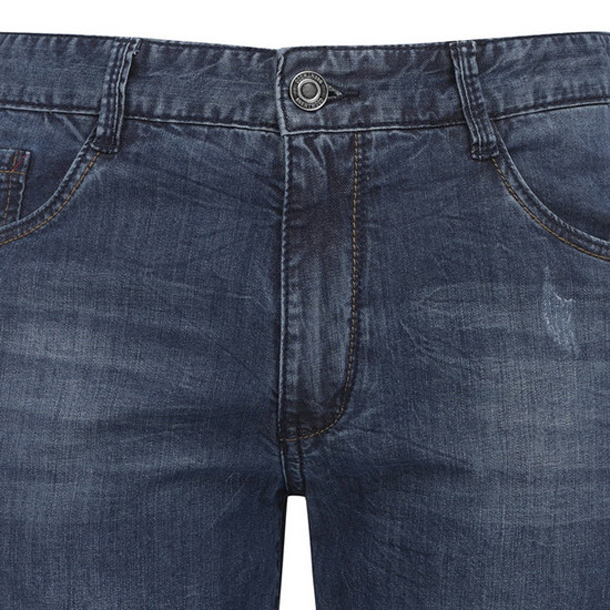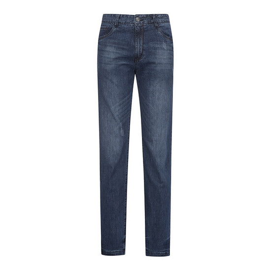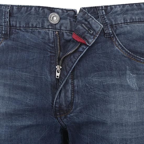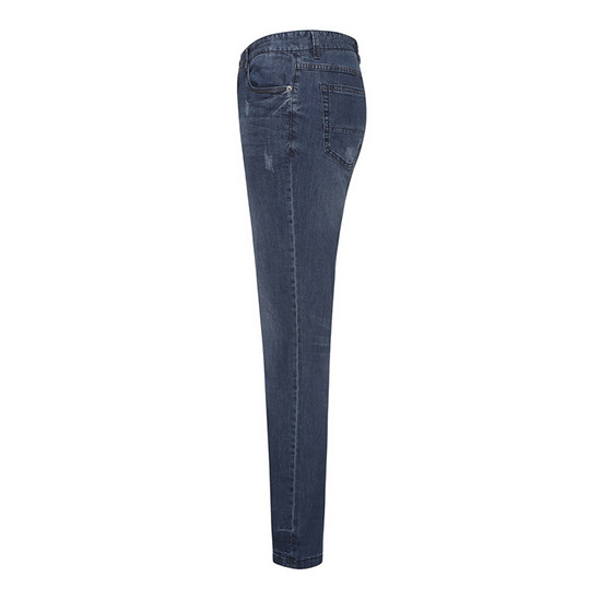 - 다크한 워싱과 디스트로이 디테일로 빈티지한 남성 데님 팬츠.