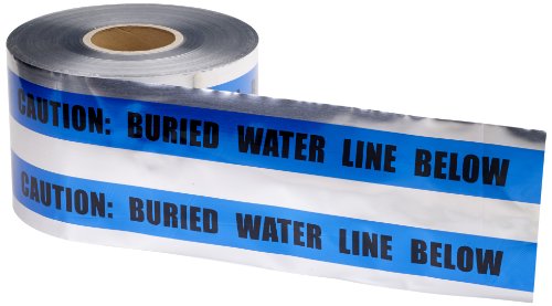 Mutual 17774 Polyethylene Underground Water Line Detectable Marking Tape, 1000' Length x 6" Width, Blue