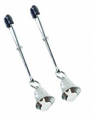 Studio : USA Publisher : USA Product Description Adjustable tweezer-style nipple clamps with tiny bells. The small silver bells ring when they move. Soft rubber tips. Adjust the clamps by sliding the metal rings up the tweezers V from merely lovely decoration to pretty strong stimulation. Sold as a pair. 0