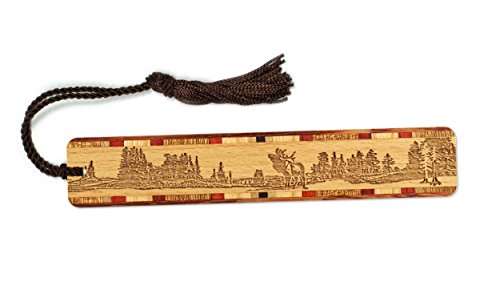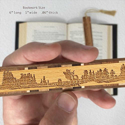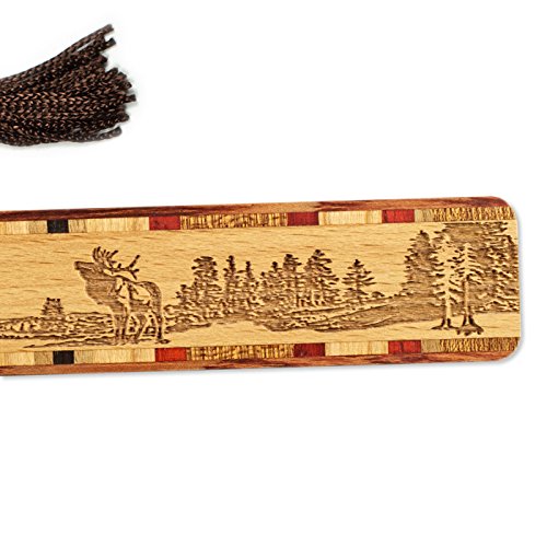 Elk Scene - Nature- Mountains Engraved Wooden Bookmark with Tassel