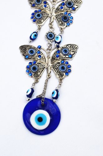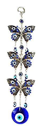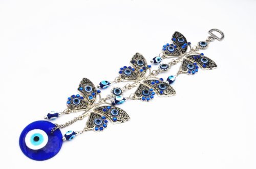 Blue Evil Eye with Butterflies Design Hanging Decoration Ornament ( with a Betterdecor Pouch)