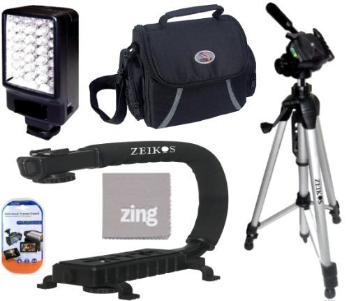 Big Mikes Deluxe 5500K LED Video Light + Video Bracket Action Stabilizing Handle + Soft Medium Camcorder Case