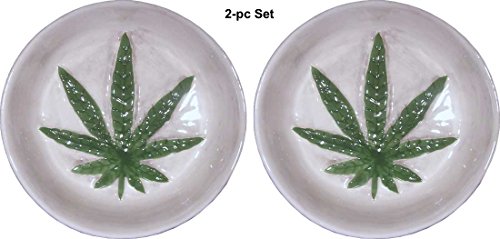 -. Feature : Marijuana Leaf Design with Relief Dish-Ashtray, Hand Crafted of High Gloss Porcelain-Ceramic, 2-pc Set by Nose Desserts Brand. / 2-pc set, Dimensions: 1.5-inches H x 5-inches Diameter. NEW, High Quality, Individually Hand Crafted of Durable Hand Crafted of High Gloss, High Temperature, Porcelain-Ceramic. / Super gift idea for Every-Day use, Special Occasions, Home Decor, Prop or Theme parties; Excellent for show and display on any mantel, table or bookshelf, Collectable Conversational Functional Art-work / Easy cleaning with soap & water and is dishwasher safe. / New in Box safe shipping with our Box-in-Box Protection