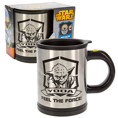 Officially licensed Star Wars movie Yoda self-stirring lidded travel mug, 12 oz.
