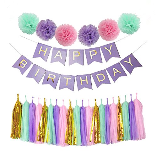 Studio : Mefuny Publisher : Mefuny Binding : Office Product Product Description Our team of party planners has hand-selected the most popular Purple,Gold,Pink and Green Decorations so that you can decorate with ease.