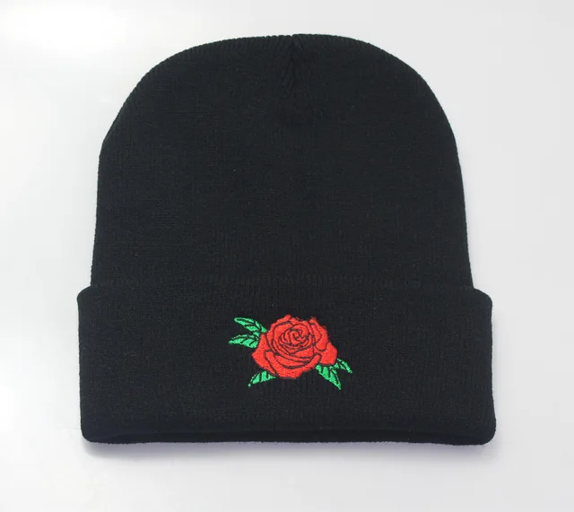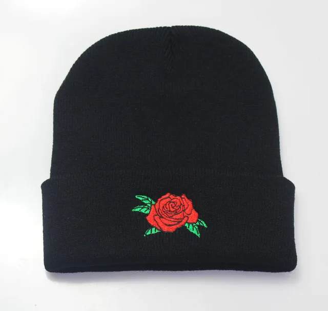 | [해외]2017 새로운 남성 여성 겨울 비니 모자 새로운 장미 꽃 자수 애호가 모자 탄성 아크릴 높은 품질 |
