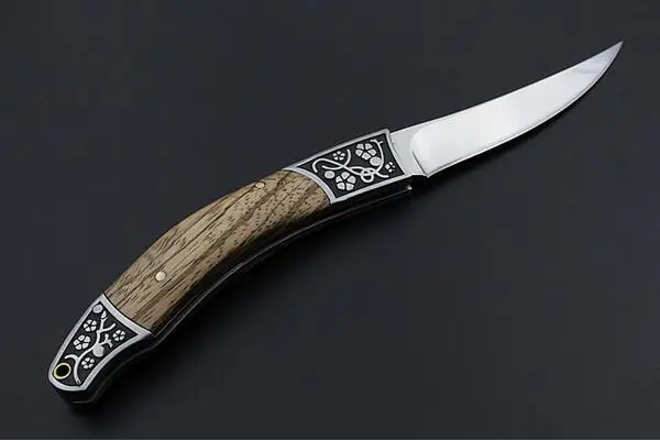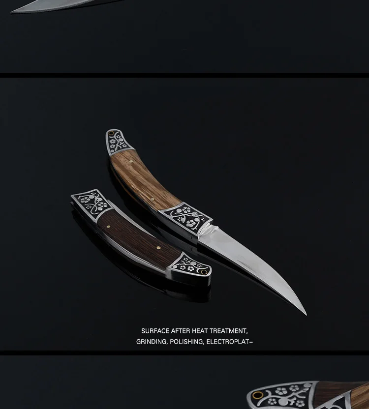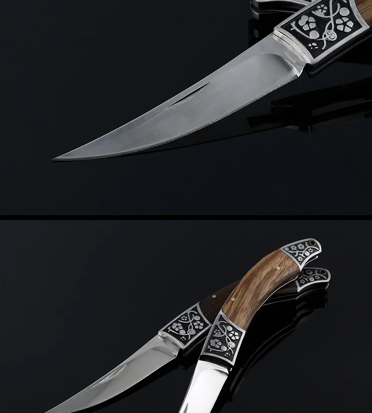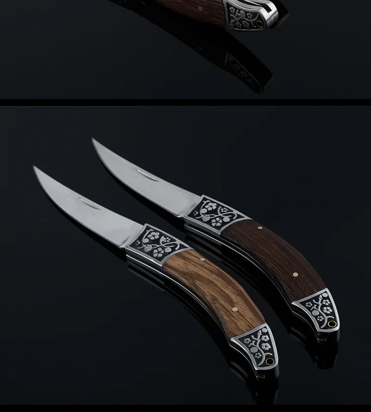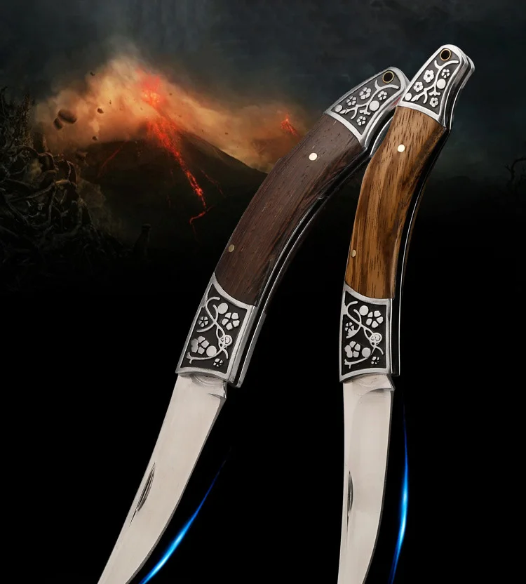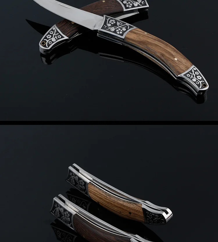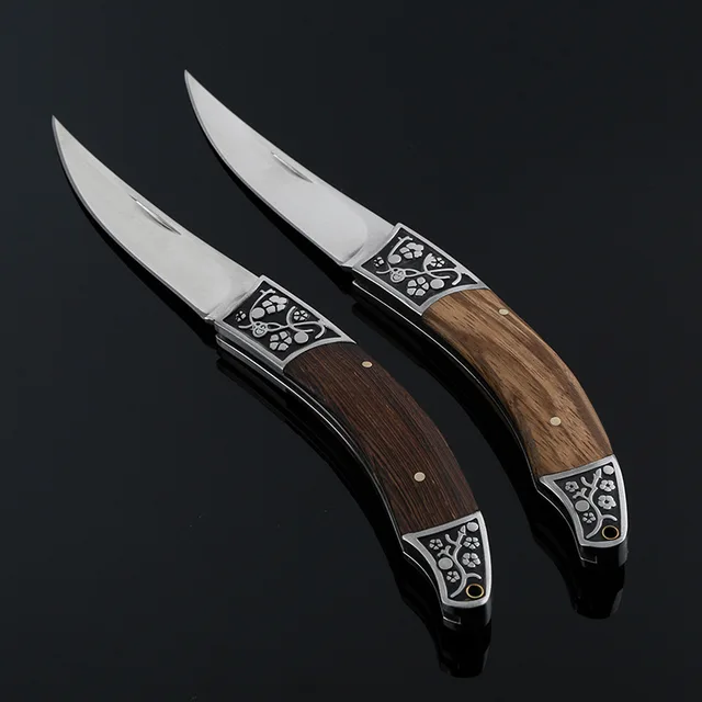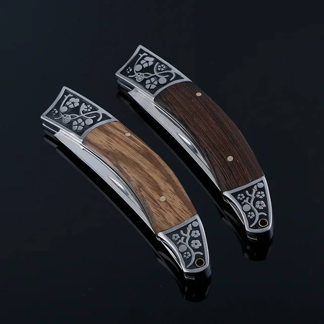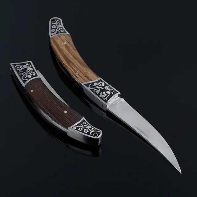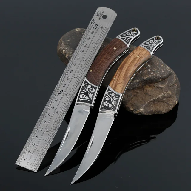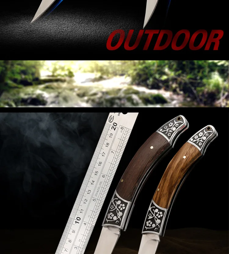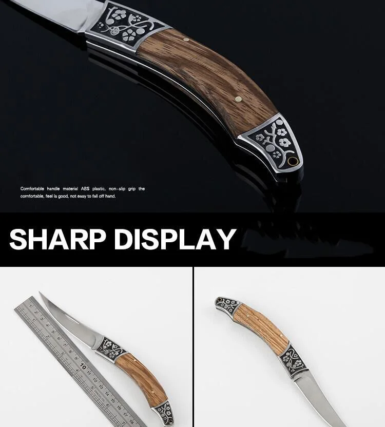 | [해외] 초승달 619F 야외 접는 칼 얼룩말 나무 핸들 나일론 칼집 사냥 캠핑 생존 도구 상당 56HRC 스위스 포켓 나이프 |